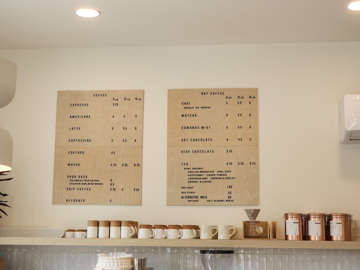 The menu reflects the relaxed Edmonds setting, encouraging visitors to linger inside the warm, welcoming space or take their coffee to go while strolling nearby. It suits a quiet morning alone, a casual catch-up with friends, or a peaceful moment enjoying the view just steps from the water.